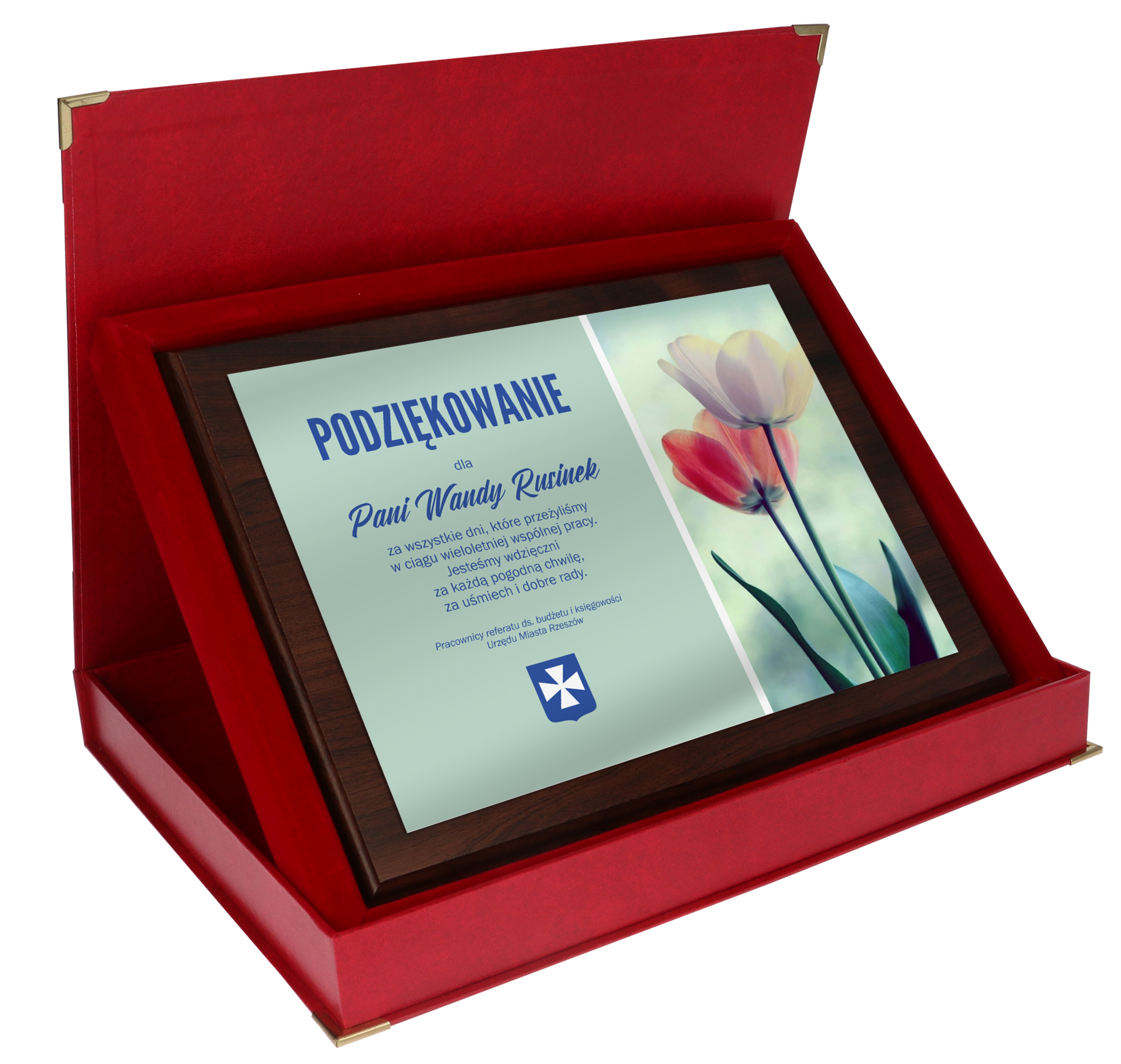 Holzplakette im Etui/Rot in 4 Größen Lieferbar